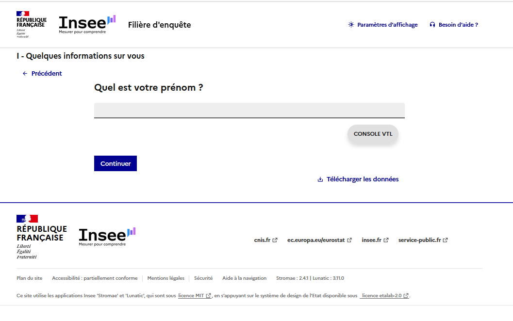 La version du questionnaire ainsi générée est très proche du rendu final mais ne dispose pas de toutes les fonctionnalités d'un questionnaire complètement intégré à la plateforme de collecte.