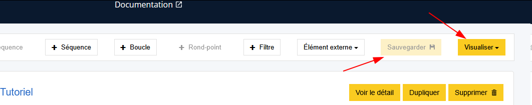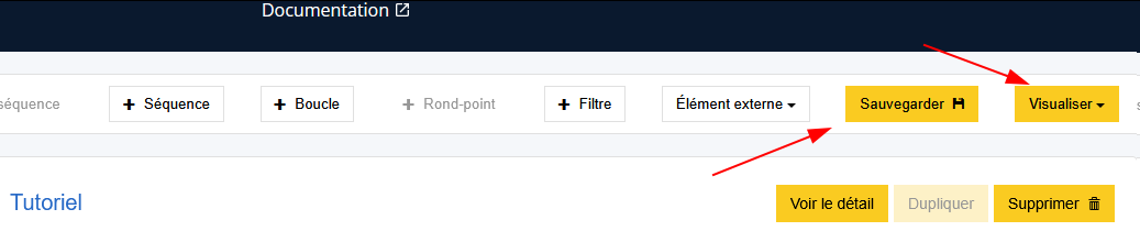 Il est possible de sauvegarder ou de visualiser le questionnaire à tout moment via les boutons dédiés en haut de page.